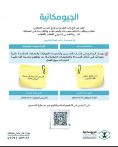 التخصصات المتاحة: هندسة المساحة، نظم المعلومات الجغرافية